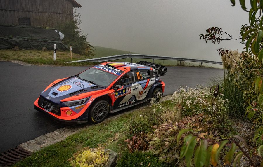 Auf der Vormittagsschleife mit drei Wertungsprüfungen machten die zunächst recht rutschigen Streckenbedingungen den Piloten zu schaffen: Der am Morgen stellenweise in der Luft hängende leichte Nebel sorgte in Kombination mit Herbstlaub und etwas Schmutz für teils schwer kalkulierbare Verhältnisse, die für so manchen „Aha“-Moment sorgten. Der als Führender in den Tag gestartete Thierry Neuville verteidigte seinen äußerst knappen Vorsprung auf den ersten beiden Prüfungen des Tages, verlor dann aber auf der dritten WP mehr als eine halbe Minute, als er nach einem Ausritt sogar kurzfristig in einem Straßengraben festhing. Der WM-Aspirant fiel so auf Rang vier zurück und musste zugeben: „Es waren schwierige Bedingungen, und meine Pacenotes waren etwas optimistisch. Die Führung zu verlieren, ist natürlich enttäuschend“. In der Folge wechselte er zu einer vorsichtigeren Strategie: „Am Nachmittag konnten wir nach vorne niemanden einfangen und auch von hinten nicht eingeholt werden, wenn wir keinen Fehler machen. Deswegen mussten wir einfach ruhig durchkommen. Morgen geben wir nochmal Gas, nehmen hoffentlich einige Punkte mit und schauen vor allem, dass wir das Ziel erreichen.“