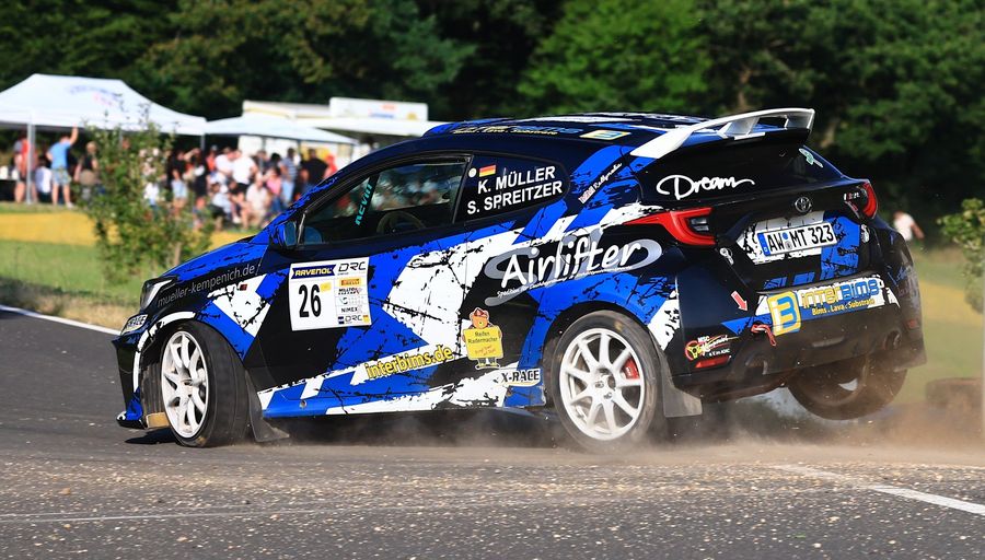 Bei der 36. ADAC Rallye Kohle und Stahl (21.09.2024) sicherten sich Kevin Müller / Stefanie Spreizer das siebte Top-Resultat der laufenden Saison. Im Toyota GR Yaris gewannen sie erneut die Klasse NC2 und haben nun 65,97 Punkte auf ihrem Konto. Das Duo legte so die Messlatte für die Verfolger im Ravenol DMSB Rallye Cup sehr hoch. Gewertet werden die sieben besten Resultate eines Teams aus den Vorläufen. Die Punkte werden in den einzelnen Klassen anhand der startenden Teilnehmer vergeben. Es dürfte für die Verfolger schwer werden, diesen Wert zu überbieten. „Wir sind in einem zügigen, flüssigen Tempo sauber durchgefahren. Ohne unnötiges Risiko aber mit einem gewissen Biss“, beschreibt Müller die sehenswerte Fahrt und ergänzt: „Wir sehen den aktuellen Punktestand sehr nüchtern“. Zum einen können die Verfolger noch bei drei Läufen ihr Konto aufstocken und auf der anderen Seite geht es bei den Vorläufen nur um die Anzahl der Punkte, mit denen beim Finale gestartet wird. Dort werden die doppelten Punkte vergeben, so dass die Tabelle noch mächtig durcheinandergewirbelt werden kann. Grund zum Feiern gab es für das Duo dennoch: In der Rheinland-Pfalz-Meisterschaft haben sie den Titel sicher und in der saarländischen Rallye-Meisterschaft liegen sie vor dem Finale mit dem Hauch von 0,6 Punkten vor den amtierenden Titelträgern Reiter / Nemenich.