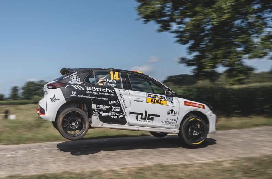 Patrick Pusch und Fabian Hoese steuerten ihren Opel Corsa Rally4 auf Platz zwei und sind damit der Vizemeisterschaft in der DRM2 ein gutes Stück nähergekommen. Patrick Pusch: „Wir haben einen Abzweig verpasst, ansonsten lief alles glatt. Nachdem unser härtester Konkurrent Max Schumann ausgeschieden war, haben wir einen Gang rausgenommen, um die Vizemeisterschaft abzusichern. An der Ostsee wollen wir sie dann endgültig klarmachen.“ Das könnten ihre Markenkollegen Konstantin Keil und Beifahrer Andreas Luther verhindern, die nach einer kontrollieren Fahrt Dritter wurden und in der Tabelle weiter auf Rang vier liegen. Großes Pech hatten wieder einmal Jonas Ertz und Maresa Lade. Aussichtsreich auf Platz zwei liegend brach auf dem Weg zur 12. WP bei ihrem Opel Corsa Rally4 eine Bremsscheibe und sie mussten die Prüfung ausschließlich mit der Handbremse bestreiten. Dennoch wurden sie in der Endabrechnung Vierter.>