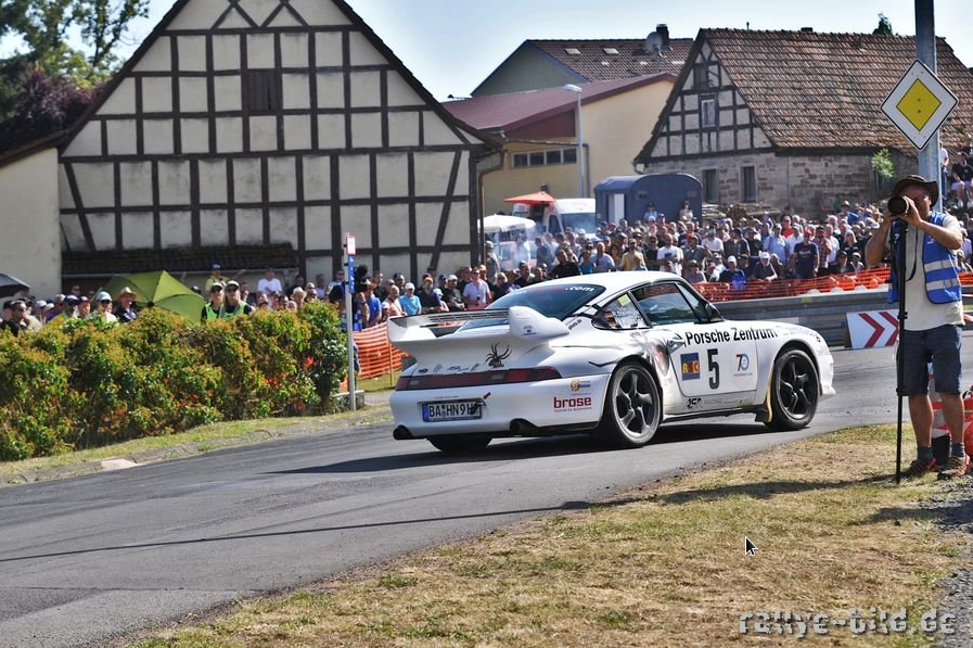 Als letzte Wertungsprüfung vor dem finalen Zuschauerrundkurs in Sulzdorf sollte die WP 5 „Saalbrunnen“ vieles noch einmal kräftig durcheinander bringen. Mit knapp 15 Kilometern Länge war sie nicht nur die längste Wertungsprüfung der 30. Grabfeldrallye, sondern auch noch gleichzeitig die längste Wertungsprüfung die bisher überhaupt bei der Grabfeldrallye gefahren worden ist. Wieder sind es Daniel Rexhausen und Nico Otterbach, die zur Bestzeit stürmten. Patrik Dinkel, Thomas Lorenz und Sebastian Schmidt folgten auf den Plätzen. Walter Gromöller sorgte hier mit Beifahrer René Meier für einen Husarenritt und folgt als fünfter noch vor dem Ford Fiesta R5 von Rainer Hahn und Bianca Pfaff, die ansonsten an diesem Tag mit sehr vielen technischen Problemen zu kämpfen hatten. Auch Uwe Gropp mit seiner Tochter Jenny auf dem heißen Stuhl fuhren auf der Saalbrunnen-Prüfung unter die ersten 10 mit ihrem Peugeot 208 T16 vor Yves Volte und Matthias Weber auf dem pfeilschnellen Lada VFTS mit einem Eigenbau 2-Liter-Motor sowie Colin Dücker mit Beifahrer Jonas Decker. In dem Kurven-Labyrinth rund um die Quelle der Fränkischen Saale schienen jedoch einige die Orientierung und damit folglich auch viel Zeit zu verlieren. So auch Rudolf Reindl und Michael Rausch, die beiden jeweils rund zwei Minuten durch diverse Ausritte und Verbremser einbüßten. Auch Nicolas Hässler mit Beifahrer Robert Steinhübl auf Porsche 911 RSR fielen durch einen Dreher sowie einem zusätzlichen Verbremser um mehr als eine Minute zurück. Nur zehn Teams blieben auf der sehr anspruchsvollen 15 km-XL-Sprintprüfung bei einer Gesamtfahrzeit von unter zehn Minuten.